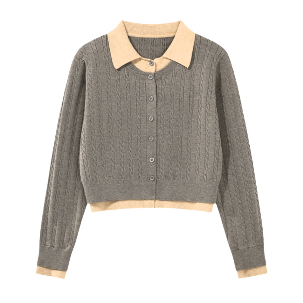 - Plus-Size Embroidered Cardigan – Autumn Contrast Collar Two-in-One Knit Sweater